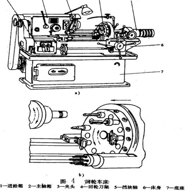 車床的種類很多,按其結構和用途的不同,可分為臥式車床、立式車床圖1,轉塔車床圖2、轉塔車床圖3、回轉車床圖4、落地車床、液壓仿形及多刀自動和半自動車床和各種專用車床(如曲軸車床、凸輪車床、鏟輪車床等)。本節(jié)將以CA6140型臥式車床為例對其傳動系統(tǒng)和主要結構進行介紹。
