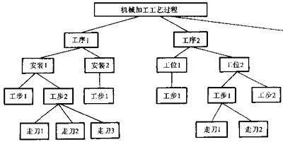 圖1-4 表示了某個(gè)零件機(jī)械加工工藝過(guò)程的組成情況,同時(shí)也說(shuō)明了工序、安裝、工位、工步及走刀之間的關(guān)系。