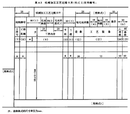 1)機械加工(或裝配)工藝過程卡,以工序為單位簡要說明產品、部件的加工(或裝配)過程的一種工藝文件。
