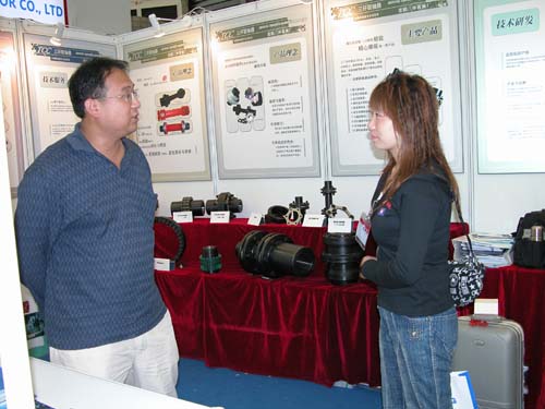 十多年來(lái), 為客戶解決傳動(dòng)問題成了沈陽(yáng)三環(huán)的日常工作。 豐富的制造經(jīng)驗(yàn)、雄厚的技術(shù)力量、高度團(tuán)結(jié)的工作隊(duì)伍,使該廠可為客戶提供測(cè)繪、設(shè)計(jì)、制造、開發(fā)等一系列完備的技術(shù)服務(wù)。展臺(tái)上陳列了一系列的產(chǎn)品:膜片聯(lián)軸器、鼓形齒聯(lián)軸器、 齒式聯(lián)軸器、彈性套柱銷聯(lián)軸器、 脹緊聯(lián)接套(包括鎖緊盤)等等,另外還陳列了該廠自行開發(fā)研制的意境申請(qǐng)專利的對(duì)輪型膜片聯(lián)軸器等其它形式的聯(lián)軸器。記者為了留下這難得的資料,把這些產(chǎn)品都一一的攝入鏡頭。