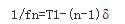 上式分別顯示了脈沖數(shù)n與脈沖頻率fn和時間tn的關(guān)系。令△/f0=δ,即加速階段相鄰兩脈沖周期的減量,則上述公式簡化為:
