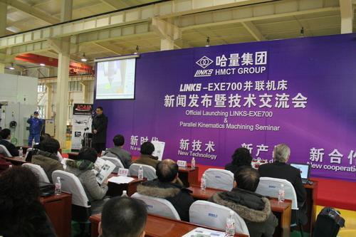 據(jù)哈量集團(tuán)董事長(zhǎng)魏華亮介紹,這款新一代LINKS-EXE700并聯(lián)機(jī)床是哈量集團(tuán)引進(jìn)瑞典愛(ài)克斯康(EXECHON)公司并聯(lián)機(jī)床技術(shù),通過(guò)消化吸收及再創(chuàng)新而設(shè)計(jì)制造的具有國(guó)際領(lǐng)先水平的產(chǎn)品。這種機(jī)床具有剛性高、動(dòng)態(tài)及高速性能好、加工范圍大等特點(diǎn),一次裝夾即可實(shí)現(xiàn)5到6面及全部復(fù)合角度的位置加工,特別適用于敏捷加工或復(fù)雜異型件及復(fù)合角度孔和曲面的加工等。