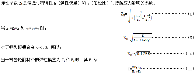 錐齒輪承載能力計算方法第 2 部分:齒面接觸疲勞(點蝕)強度計算彈性系數(shù)ZE(GB/T10062.2-2003)