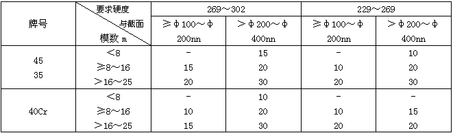 5.2.2齒輪毛坯淬火冷卻時,介質(zhì)溫度應(yīng)控制在:水溫≤40℃;油溫≤80℃。