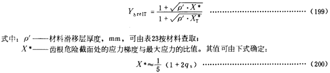 相對齒根表面狀況系數(shù)YRrelT為所計(jì)算齒輪的齒根表面狀況系數(shù)與試驗(yàn)齒輪的齒根表面關(guān)況系數(shù)的比值。