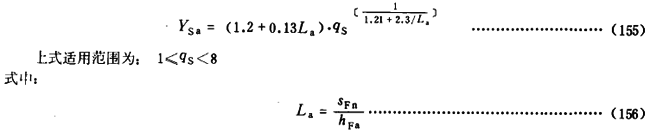 對于齒形角αn為20°的齒傳輸線,YSa可按式(155)計(jì)算。對于其他齒形角的齒輪,可按此式近似計(jì)算YSa。