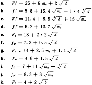 B2.1本附錄規(guī)定的有有傳動(dòng)項(xiàng)目的公差或極限偏差的計(jì)算式、數(shù)值如下: