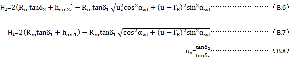 對(duì)于錐齒輪,使用當(dāng)量齒輪的量值,見GB/T10062.1-2003附錄A,或用下式: