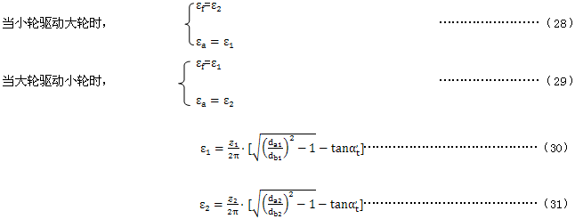 重合度系數(shù)Kε是考慮在忽略載荷分配時,將小輪齒頂?shù)拈W溫值轉換為沿嚙合線閃溫平均值的系數(shù)。重合度系數(shù)可以用齒高重合度ε1與ε2以及它們的和εa來表示。Xε的公式是基于假定沿嚙合線的閃溫是線性分布的。這種方法的可能誤差將不會超過5%,且偏于安全。