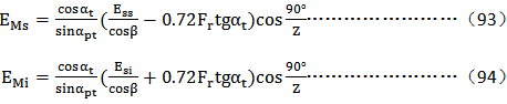 對(duì)量柱測量齒距(M值)偏差的測量結(jié)果ΔEM應(yīng)用設(shè)計(jì)圖樣規(guī)定的量柱測量距極限偏差EMs、EMi對(duì)其進(jìn)行評(píng)定。當(dāng)設(shè)計(jì)圖樣未作規(guī)定時(shí),應(yīng)將圖樣規(guī)定的齒厚極限偏差Ess、Esi按公試(91)、(92),(93),(94)換算為EMs、EMi;也可以將測得的ΔEM按公試(95),(96)(97),(98)換算為ΔEss、ΔEsi,用Ess、Esi對(duì)其進(jìn)行評(píng)定。