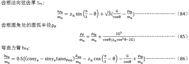 hFe——對(duì)外齒輪用式(86),對(duì)內(nèi)齒輪用式(88)。