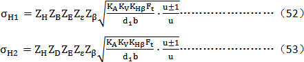 小輪和大輪的計算接觸應力σH1和σH2分別按下述兩式確定: