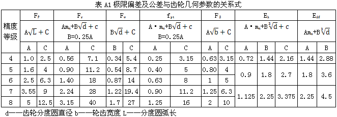 表A1極限偏差及公差與齒輪幾何參數(shù)的關(guān)系式