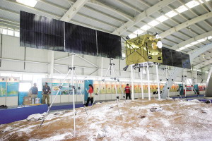 嫦娥一號(hào)衛(wèi)星的模型是首次出現(xiàn)在展會(huì)上。本報(bào)記者蔡敏強(qiáng)攝