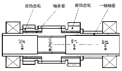 CPC2型叉車變速器,10%的產(chǎn)品在出廠試車時有異常響聲,不能順利過關(guān),經(jīng)檢查發(fā)現(xiàn)異常響聲從輸入軸總成(見圖1)中發(fā)出,并伴有齒輪與軸承套發(fā)生相對軸向位移和旋轉(zhuǎn)位移的現(xiàn)象。經(jīng)分析是一軸軸套內(nèi)花鍵大徑相對于軸套外圓徑向跳動超差,導致軸承和前、后擋齒輪受擠壓所致。