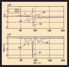 圖3:某些工程師可能將這些圖看成是頻率響應(yīng)圖的“真實(shí)”和“想象”成分。但是這里不需要理解它是什么含義。圖形表示在某個(gè)給定的應(yīng)用場(chǎng)合以不同懸伸長(zhǎng)度使用同一把刀具發(fā)生顫振的趨勢(shì)。振幅較高意味著發(fā)生顫振的趨勢(shì)較高。這些圖表示,在將長(zhǎng)徑比從8:1增加到9:1時(shí),增加懸伸長(zhǎng)度會(huì)增加顫振的趨勢(shì)。但是,當(dāng)這種比例增加到10:1時(shí),這種趨勢(shì)又倒過(guò)來(lái)了,此時(shí)卻產(chǎn)生了更加穩(wěn)定的懸伸值。