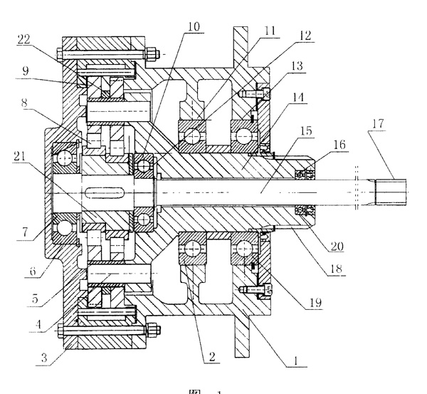 | 一種擺線針輪減速機(jī)。解決了現(xiàn)有的擺線針輪減速機(jī),使用占地面積大,具有一定局限性的問題。其特征在于:輸入軸軸承(7,10,16)分別固定在端蓋軸承室(6)及輸出軸軸承室(12,20)內(nèi),輸出軸軸承(2,19)分別固定在殼體(1)內(nèi)的軸承室(11,13)內(nèi),輸入軸(15)上固定有偏心套(21),偏心套(21)上固定兩個(gè)偏心軸承(8),兩個(gè)偏心軸承(8)上分別固定有擺線輪(9),且輸出軸(14)為套在輸入軸(15)上的空心軸,輸入軸(15)和輸出軸(14)在減速機(jī)殼體(1)的同一側(cè)。該減速機(jī)的結(jié)構(gòu)簡(jiǎn)單,占地面積小,可以滿足大傳動(dòng)比,需要占地面積小的設(shè)備上使用,且運(yùn)行穩(wěn)定,無噪音。 |