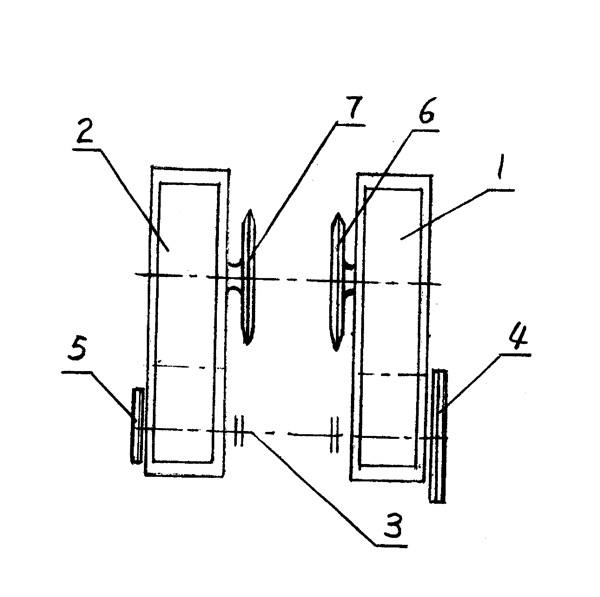 一種對稱減速機,其特征是:兩臺相同的減速機對稱放置固定,并同軸輸入傳動,兩鏈條分別與減速機輸出輪嚙合傳動。