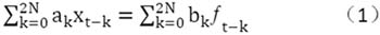 式(1)表示響應(yīng)數(shù)據(jù)序列Xt與歷史值Xt-k,的關(guān)系,其中等式左邊為自回歸(AR)模型,右邊為滑動均值(MA)模型,2N為自回歸和滑動均值模型的階次,ak、bk分別表示待識別的自回歸系數(shù)和滑動均值系數(shù),ft-k為白噪聲激勵。