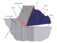 圖1顯示了前刀面區(qū)域待加工的材料是如何持續(xù)地塑性變形。剪切切屑的同時(shí)工件表面進(jìn)行了重組。刀具與切屑的摩擦以及切屑的剪切和剝離產(chǎn)生的熱量傳遞給了刀具或工件,或通過切屑散發(fā)。如果正確設(shè)置工藝過程,能將產(chǎn)生熱量的70%到80%傳遞給切屑。