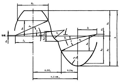 注:表中帶*號(hào)者,是指該尺寸與法向模數(shù)m