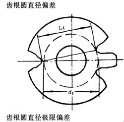 齒根圓直徑實際尺寸和公稱尺寸之差,對于奇數(shù)可用齒根圓斜徑代替。斜徑的公稱尺寸Lf為: