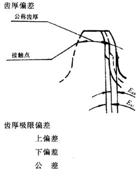 接觸點所在圓柱面上,法向齒厚實際值與公稱值之差。 |