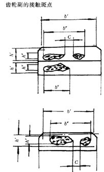 沿齒長方向:接觸痕跡的長度  (扣除超過模數(shù)值的斷開部分C)與工作長度  之比的百分數(shù),即