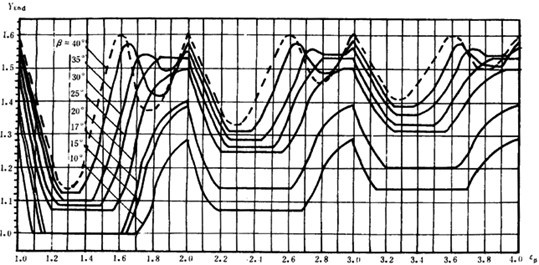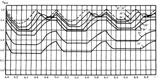齒端系數(shù)是考慮接觸跡在齒輪端部時,端面以外沒有齒根來參與承擔(dān)彎曲力矩,以致端部齒根應(yīng)力增大的影響系數(shù)。對于未修端的齒輪,YEnd值可根據(jù)εβ(εβ=b/Px)由圖8查。ó(dāng)β不是圖中值時,用插值法查。。