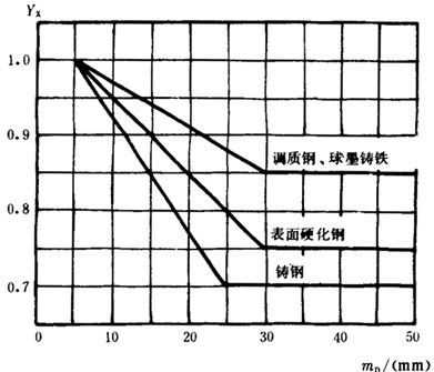 尺寸系數(shù)是考慮實際齒輪模數(shù)大于試驗齒輪模數(shù)而使材料強(qiáng)度降低的尺寸效應(yīng)。其值可按圖16查取。