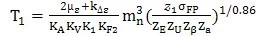 式(B1)與正文的公式(3)等效,其符號意義及取值同公式(3)。σHP應(yīng)取大輪或小輪的小值代入式(B1)。對于人字齒輪,( )按單側(cè)齒寬計,算得的T1值為單側(cè)齒寬的名義轉(zhuǎn)矩。