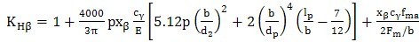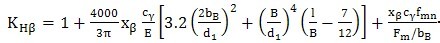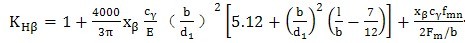 4)完全螺旋線修形(補(bǔ)償彎曲和扭轉(zhuǎn)變形)的與3)相同的齒輪副,KHβ按式(46)確定。