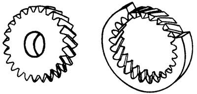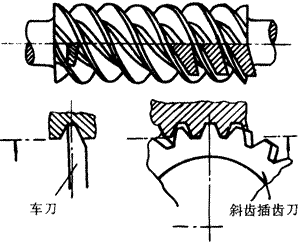 蝸桿的螺旋齒。