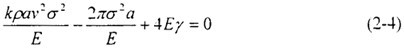 將單位面積的表面能廠用表示為臨界裂紋長度ac的形式,經(jīng)過Berry等人的修正,得到裂紋速度的表達(dá)式:
