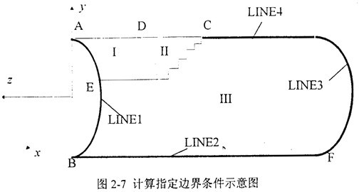 邊界條件,C點(diǎn)和邊界LINE4為運(yùn)動邊界條件。I、Ⅱ及Ⅲ區(qū)隨時(shí)間而變化。