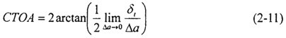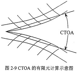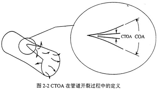 裂紋尖端張開角CTOA(Crack Tip Opening Angle)最早被用來分析核電站管路的穩(wěn)態(tài)裂紋擴(kuò)展,后來用于輸氣管線和航空工業(yè)。如圖2-2,與裂紋張開角COA不同,CTOA對應(yīng)于一定的斷裂擴(kuò)展?fàn)顟B(tài),不隨測量點(diǎn)的位置而改變。CTOA在數(shù)學(xué)上可以按下式定義: