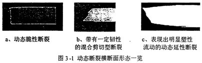 圖3-2顯示了DBF和DDF的形貌特征。從圖中看出動(dòng)態(tài)延性斷裂相比于脆性斷裂具有速度較低,裂紋擴(kuò)展途徑比較單一,能自行止裂等特點(diǎn)。由于脆性斷裂已被廣泛遏止,近二十年來,人們把注意力主要集中在延性斷裂的起裂擴(kuò)展和止裂上,對延性斷裂的關(guān)注遠(yuǎn)超過對脆性斷裂的研究,目前還遠(yuǎn)未結(jié)束。管線鋼動(dòng)態(tài)斷裂韌性的測定也就成為了人們關(guān)注的焦點(diǎn)。