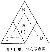 以二維情況為例,計(jì)算圖5-1中A點(diǎn)梯度可選C→B→D→C作為積分路徑,但為了保證積分的精度,最好使積分路徑構(gòu)成的封閉體形心與計(jì)算點(diǎn)重合,或至少比較接近。