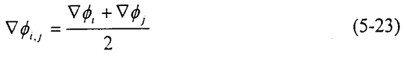 的計(jì)算主要是求出控制面上相關(guān)物理量的梯度值。首先由(5-19)式求出各單元內(nèi)物理量ф的梯度值后,界面(i,j)上物理量的梯度值可簡單地由相鄰單元內(nèi)物理量ф的梯度值的算術(shù)平均得出:
