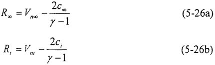 其中無反射邊界條件是根據(jù)特征線的方法來求出邊界上的參數(shù)值。根據(jù)一維完全氣體無粘非定常運(yùn)動的方程組,在亞聲速的條件下由邊界上的入射波和出射波關(guān)系可以得到兩個Riemann不變量: