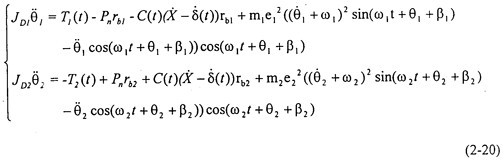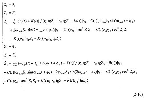 當(dāng)不考慮偏心質(zhì)量,而只考慮存在齒輪齒側(cè)間隙時(shí),方程組(2-14)可化為: