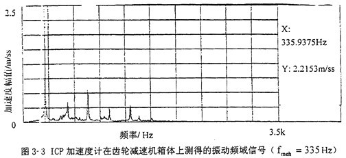 由于齒輪減速機(jī)是由齒輪、傳動(dòng)軸和軸承等傳動(dòng)部件及箱體、箱蓋等支撐部件紅成,傳動(dòng)部件在發(fā)生故障時(shí),故障振動(dòng)頻率可覆蓋幾Hz至數(shù)kHz的范圍。因此,齒輪減速箱的振動(dòng)信號(hào)不能采用位移和速度傳感器來(lái)拾取,而只能用加速度傳感器來(lái)拾取。通常加速度傳感器一般采用電荷輸出型的壓電加速度計(jì),這種加速度計(jì)體積小、重量輕、價(jià)格便宜。但由于它要和電荷放大器配合使用,因而在傳感器與阻抗變換放大器之間就有一段高阻抗信號(hào)輸送的聯(lián)接,故降低了系統(tǒng)的低頻性能、分辨率、抗干擾能力和穩(wěn)定性等方面水平。為了改變這種現(xiàn)象,便發(fā)展了集成形式的壓電傳感器-即ICP加速度計(jì),它將阻抗變換放大器封裝在傳感器的剛性殼體內(nèi)。