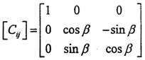 十字軸萬向聯(lián)軸器的機構(gòu)實際上是球面四連桿機構(gòu),它的空間運動關系早已解析出。當輸入、輸出兩軸線的夾角為β輸入軸轉(zhuǎn)角ф