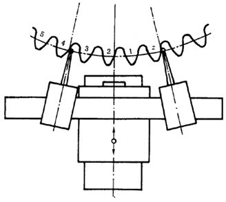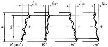 取在直徑上對置的同側位置的齒面,從其螺旋線圖上可以獲得適用的平均值,然而,如螺旋線傾斜偏差沿齒輪圓周變化時,則必須至少取三個均布齒面的跡線。否則其偏差不一定能被發(fā)現(xiàn)。