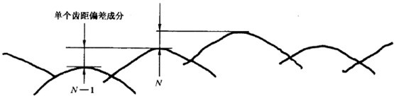 如果在齒距N處產生一個齒距偏差,是當旋轉接觸過程從N-1齒轉移到N齒時,一個局部的切向分量將顯示在切向綜合偏差圖上,它表現(xiàn)為圖上齒廓展成分量中一個分量的位移。