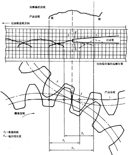 如果有適當?shù)脑囼炁_,重載齒輪的切向綜合偏差也可用類似方法檢驗,但在這種情況下,記錄下來的偏差受到輪齒受載變形,嚙合剛度變化以及由于旋轉速度面產生沖擊和輪齒的幾何形狀不完善等因素的影響,故GB/T10095.1不適用于這類檢測。