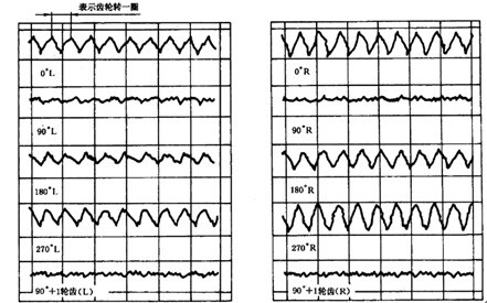 產品齒輪副嚙合所形成的切向綜合偏差線圖,通常顯示出一系列的周期性偏差,相應于逐齒嚙合的循環(huán)以及小齒輪和大齒輪旋轉的周期。