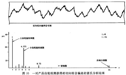 圖35中的線圖表示一幅完整的切向綜合偏差線圖,以及FFT分析所得的結果。