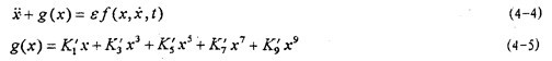 對于形如(4-4)式這樣的強非線性系統(tǒng),李驪提出了一種新的頻閃法,近年,杜惠英和李驪用頻閃法研究了含有x5項強非線性系統(tǒng)的共振解和亞諧解雖然原則上該方法可適宜和于任意階強非線性系統(tǒng),但是在實際應(yīng)用中對更高階項會遇到積分計算問題,大大地限制了這種方法用于高階強非線性系統(tǒng)的研究。為了解決積分計算的困擾,本章提出一種新的方法一頻閃一諧波平衡法。