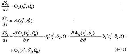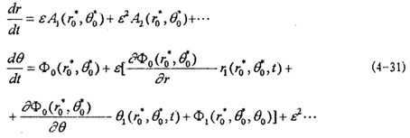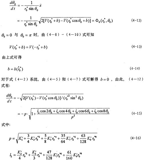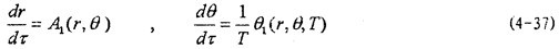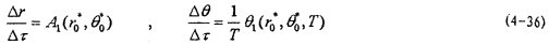這就是對應(yīng)于(4-20式的頻閃差分方程,即(4-2)式在Poicare平面上以T為周期的點變換方程。如ε充分小,則可令△τ=dτ,△r=dr,△θ=dθ,此外,(4-36)中的